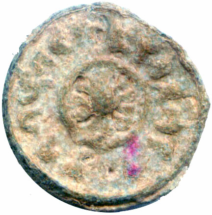 The OBRW images printed in the OBRW Book show hardly any detail. The line drawing appear not to be exact copies but drawn by eye of what was easily visible on coin or coin image. Displayed below are high resolution 600 dpi Scanned images which have been PhotoShoped to increase contrast of details. This PhotoShop operation done identically for all images however made the color of corrosion, more intense than seen on token, but does highlight the coins which may gain from some careful conservation which is not easy for lead coins.