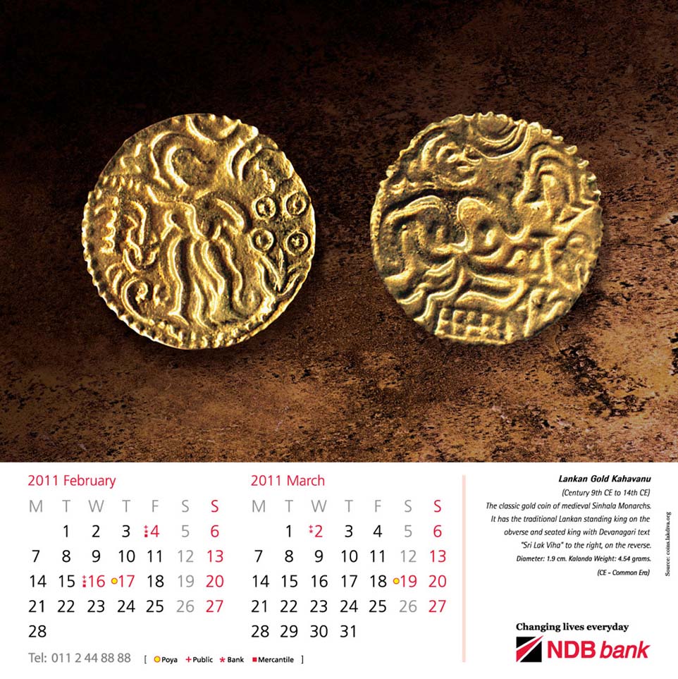 | February | 2011 - | March | 2011 : | Lankan Gold Kahavanu coin |