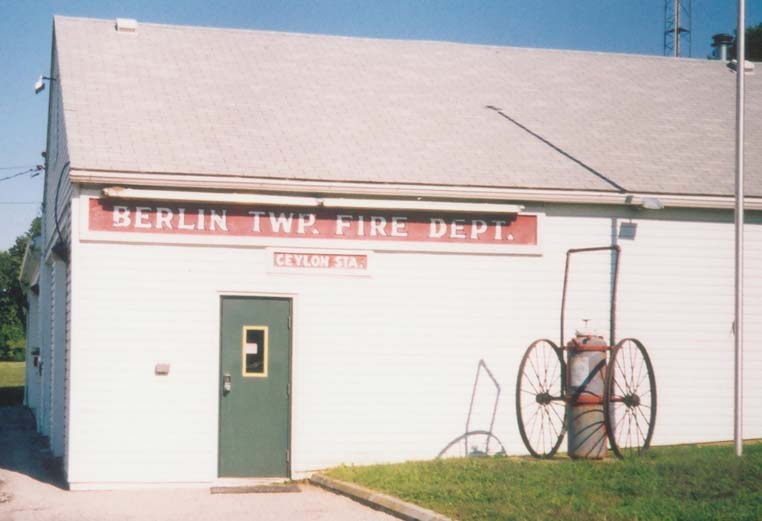 building with BERLIN TWP. FIRE DEPT. CEYLON STA. painted on the