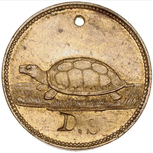 | Reverse : | A tortoise facing left, | within a beaded circle inside raised rim. |