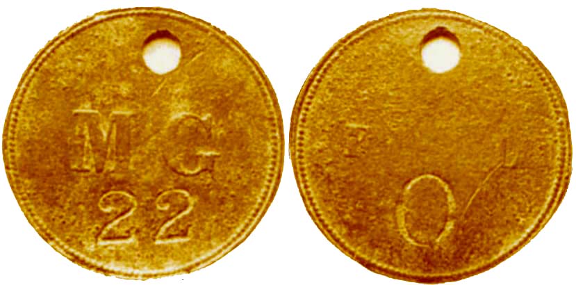 | Obverse : | Centered M G | within a beaded circle inside raised rim. |