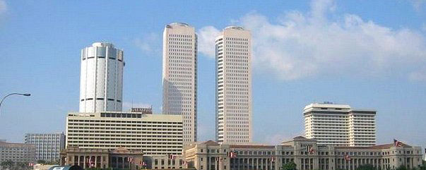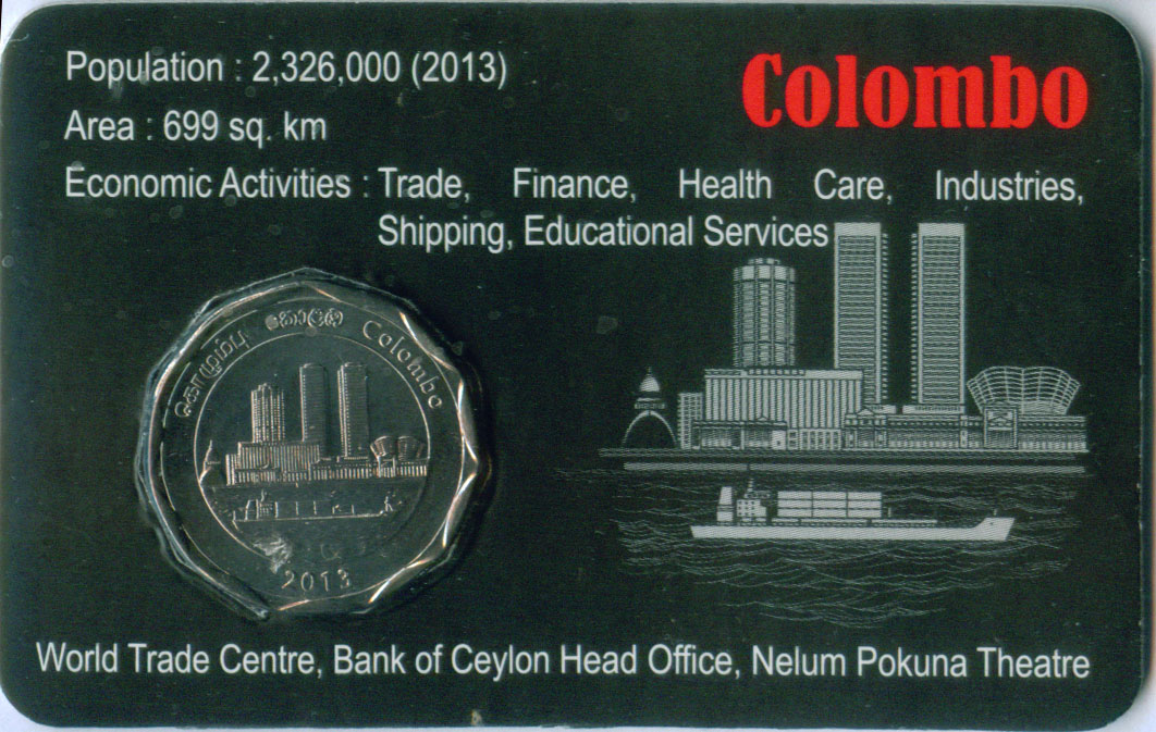 The design probably started as the Colombo Fort Skyline, as seen from Galle Face Green looking North as shown in photograph above. Although being used to reflect the changing skyline of Colonbo, the skyline view on this photograph has not changed since the WTC opened in 1996.