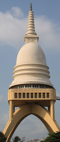 In the drawing on the coin, the Chaitya has replaced the Intercontinental (now Kingsbury) Hotel, and Nelum Pokuna has replaced Hilton Hotel. Therefore it is clearly NOT a real skyline looking North as seen from Galle Face Green.