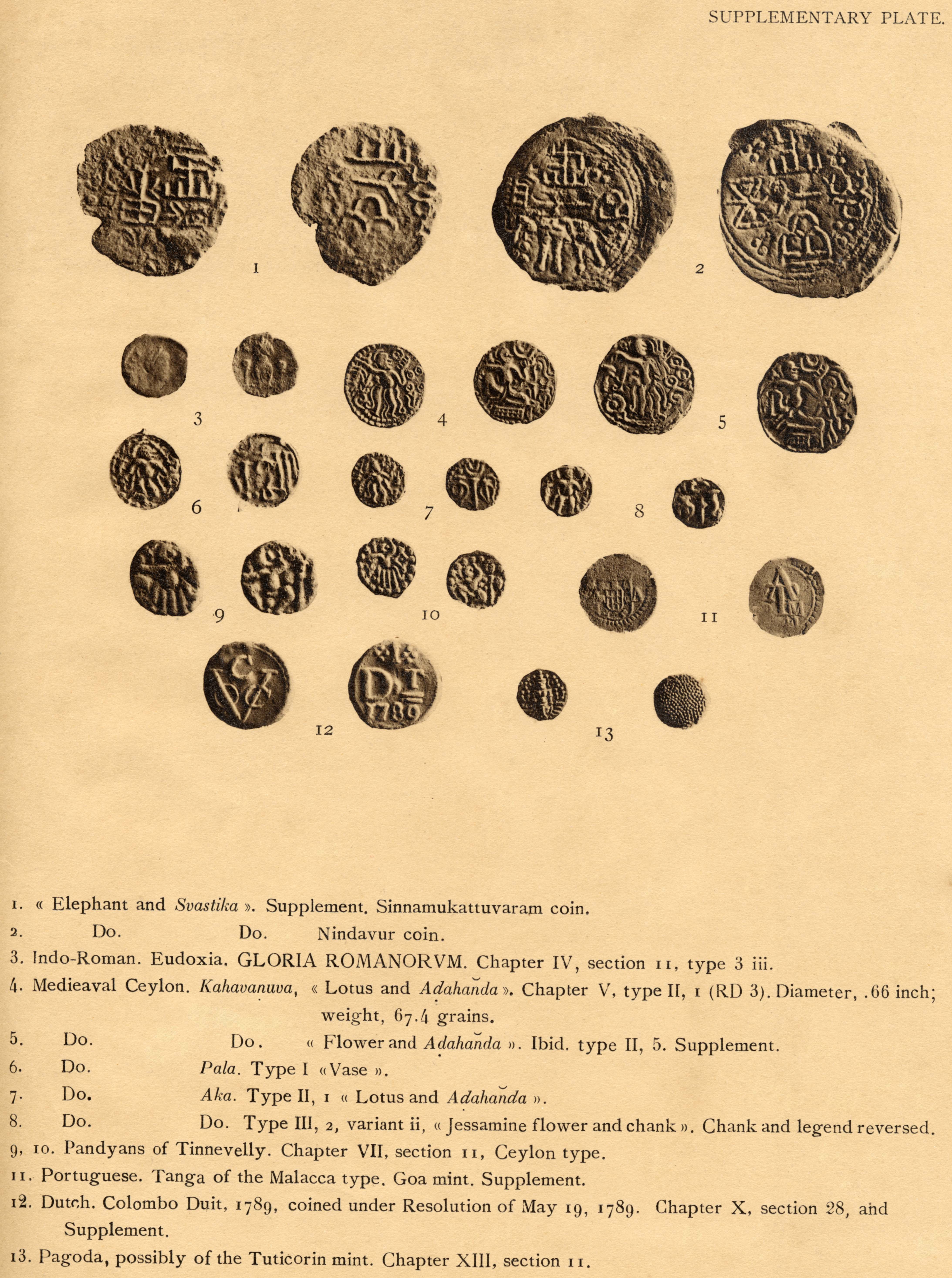 Plate I | Plate II | Plate III | Plates from Codrington's Ceylon Coins and Currency 1924 First Edition |