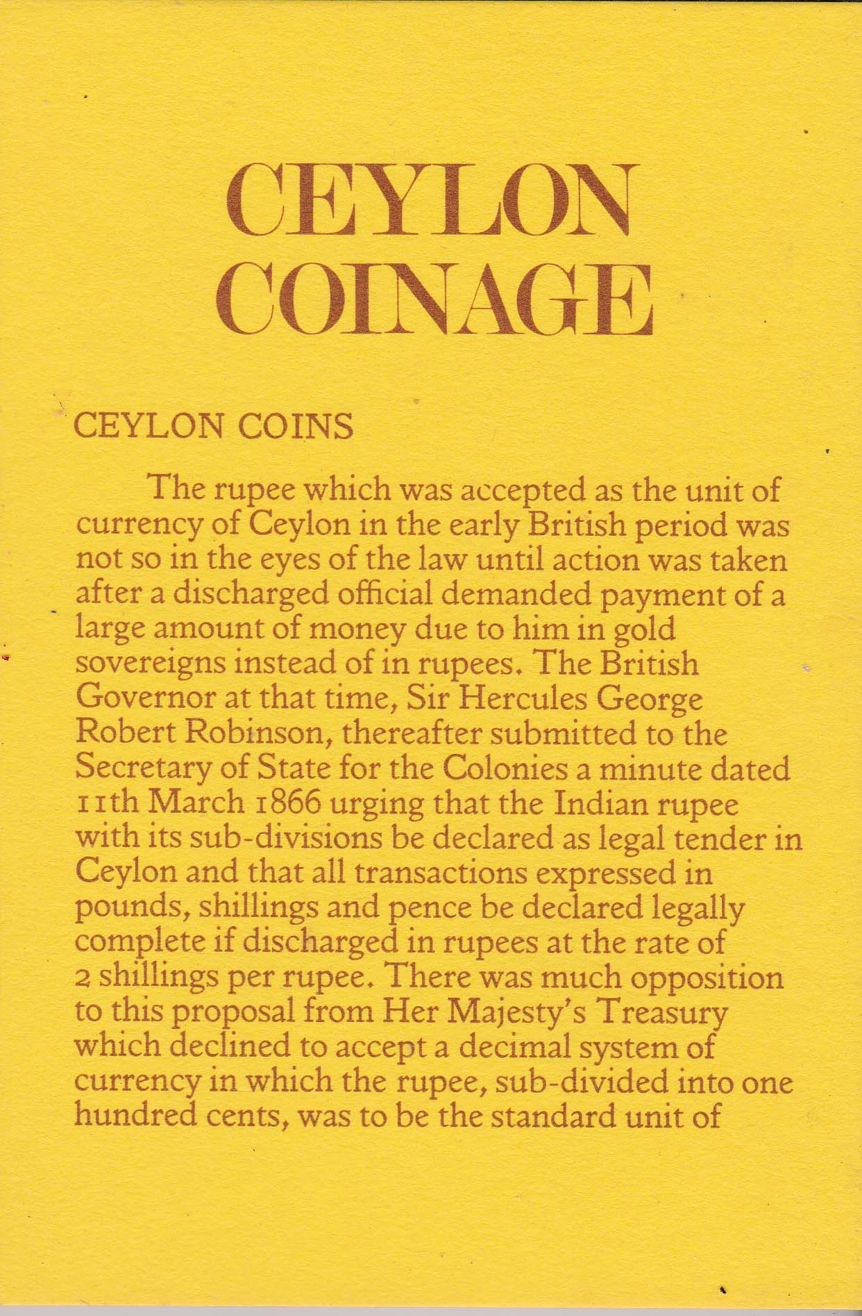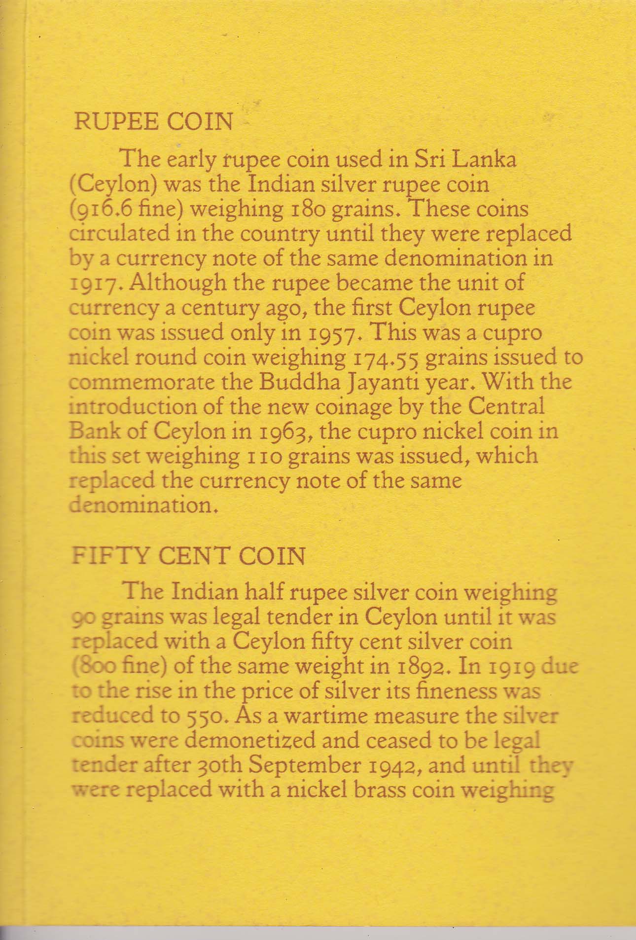 in Ceylon until it was replaced with a Ceylon fifty cent silver coin
