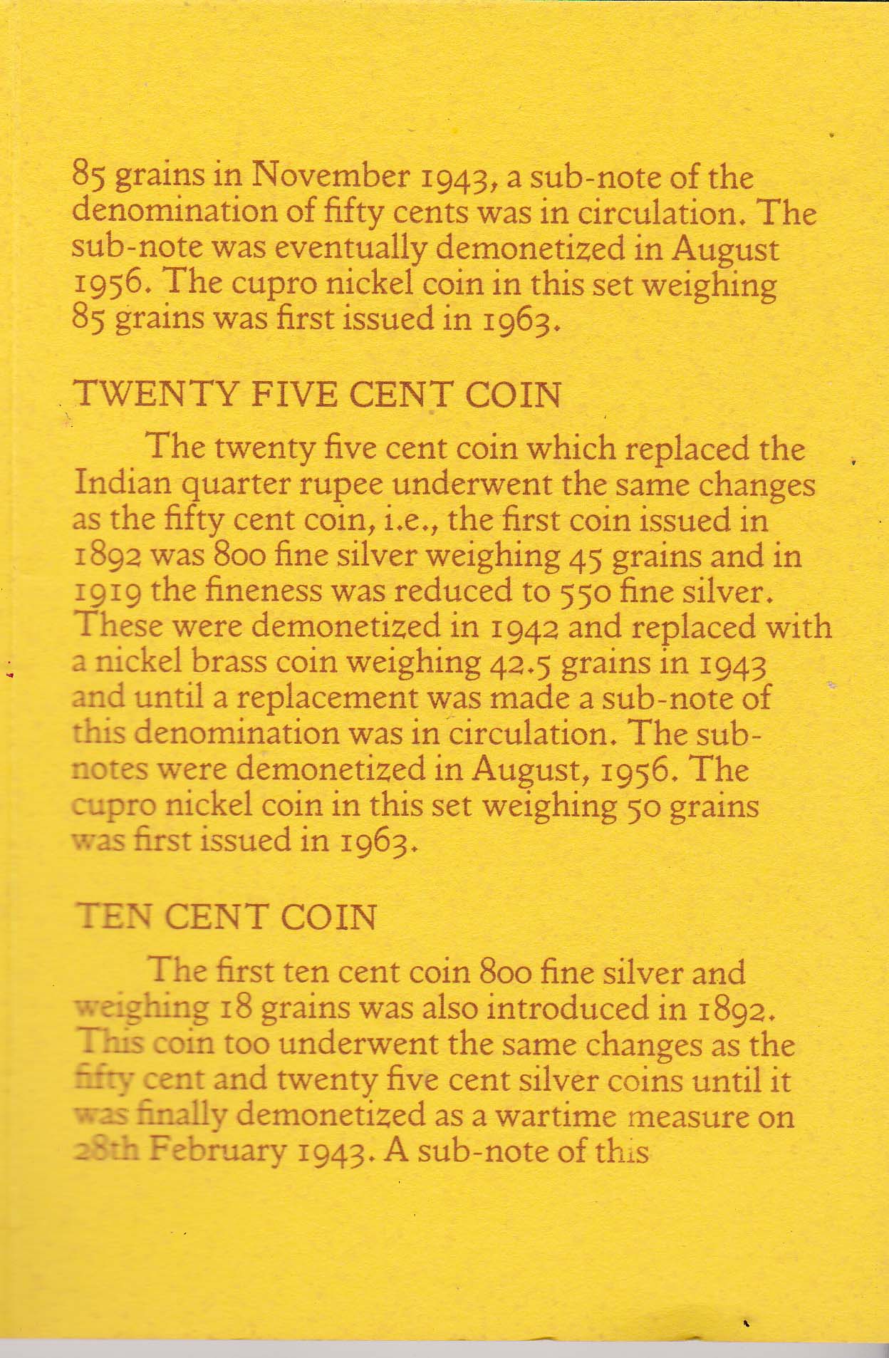 coin weighing 85 grains in November 1943, a sub-note of the