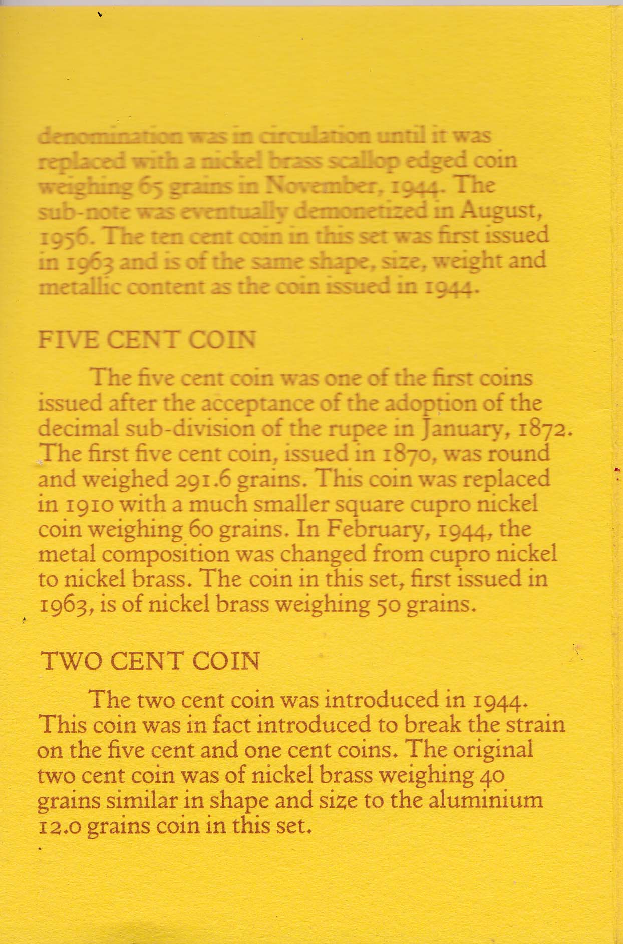 smaller square cupro-nickel coin weighing 6o grains In February, 1944,