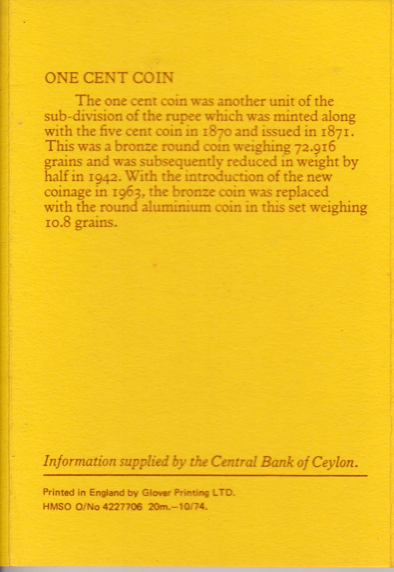 coinage by the Central Bank of Ceylon in 1963, the cupro-nickel coin