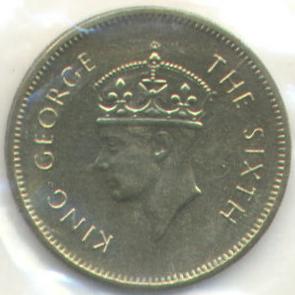 A Royal Proclamation dated 1948 June 22nd, appointed that the words Emperor of India or Indiae Imperator should be omitted from His Majesty's Style and Titles on all coins, medals and seals. Mr. T. H. Paget was commissioned to make plaster casts from the crowned effigy of His Majesty King George VI with the following inscription KING GEORGE THE SIXTH. It was used in the coinage of Ceylon. until his death on 1952 February 6th.