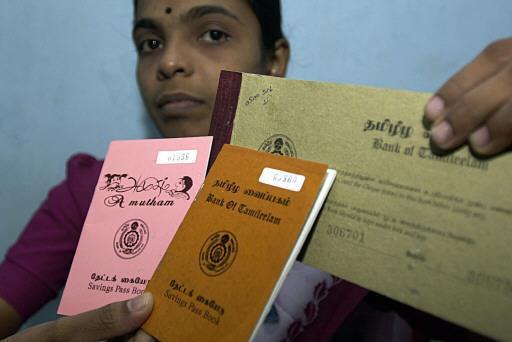 With the Tamileelam Bank he has 8,000 rupees ($80) in a savings account, recorded in a pass-book, and he has also taken a 39,000 rupee ($390) loan to buy a five-bulb solar power system. Selvavinayagam earns 8,500 rupees ($85) per month, plus free meals, a good salary for that part of the country. Since a few months ago, eight percent of his salary, plus another 12 percent from his employer, is paid into the Employee Trust Fund, another LTTE-run institution.